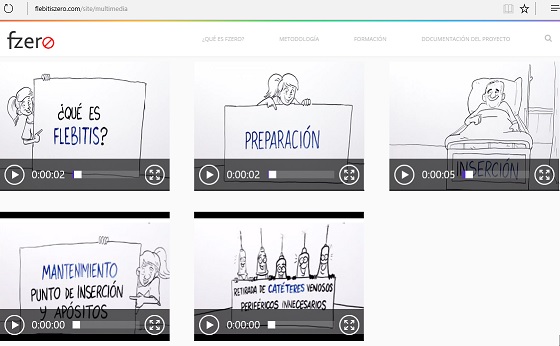 Material multimedia complementario del proyecto Flebitis Zero con sutiles guiños a la industria y de manufactura tipo Videoscribe.